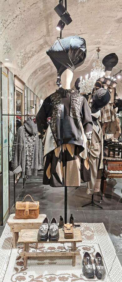 A tale proposito ho dato una sbirciatina alle vetrine dello stilista sardo Antonio Marras ad Alghero e ho scoperto un'anteprima autunno / inverno 2021-22 che ci fa pensare a terre lontane, ma anche alle splendide tradizioni dell'Isola. In chiave tribal look!